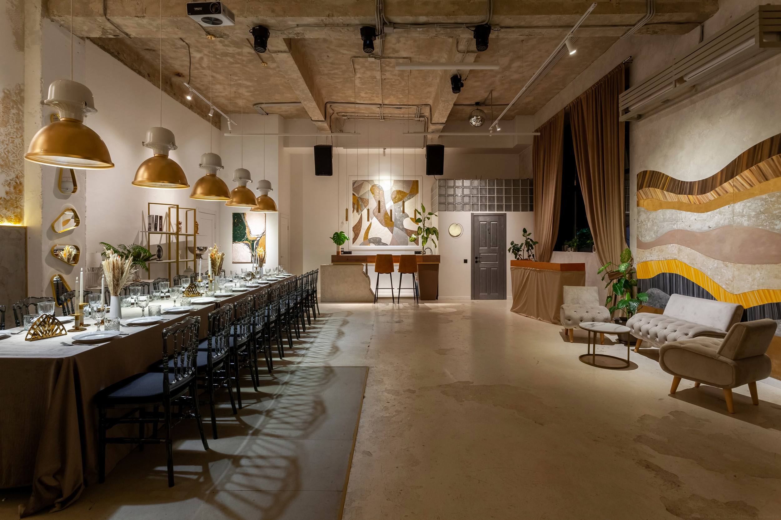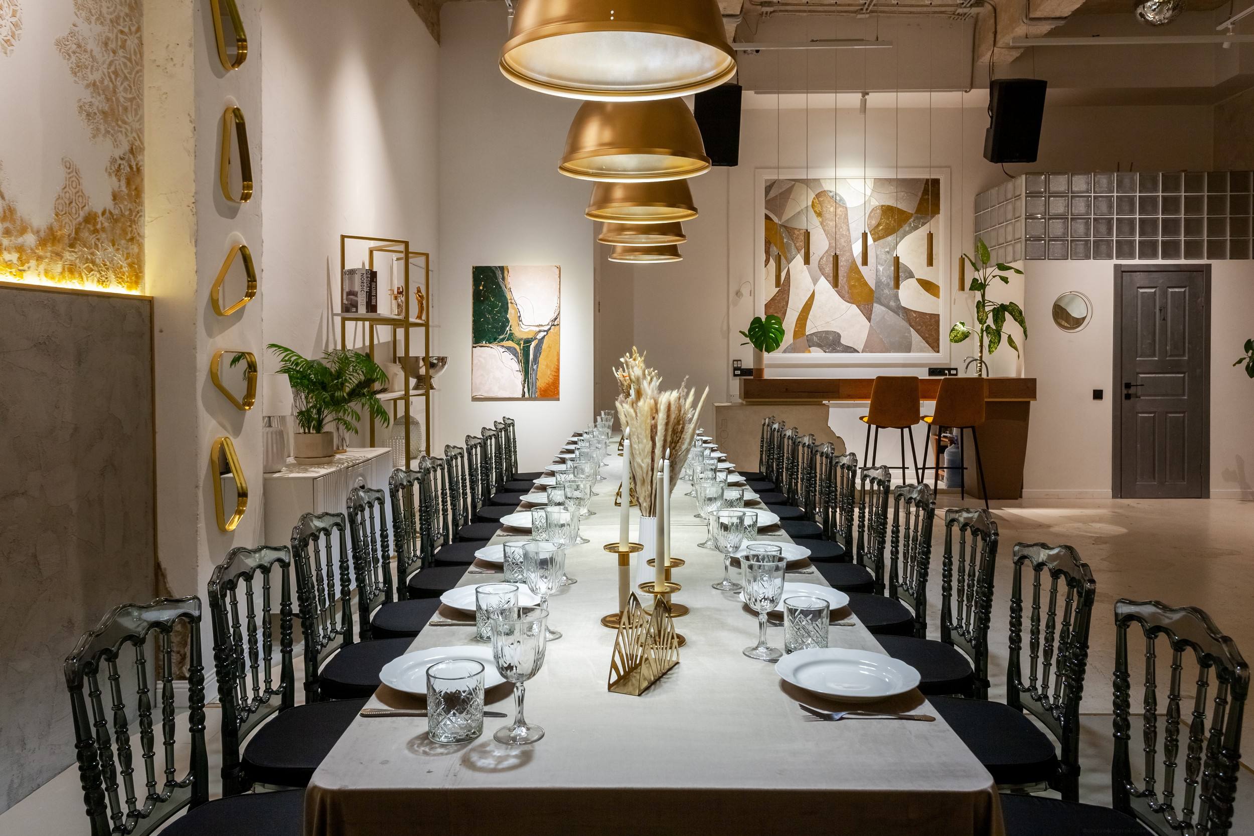 Несколько зон для гостей, 3-х метровая барная стойка, десятки зон для шикарных фото. Пространство легко трансформируется под различные форматы мероприятий.